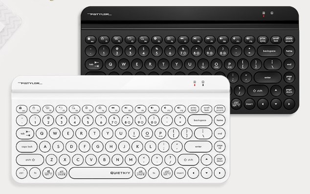 Клавиатура A4Tech Fstyler FBK30 Новая клавиатура представлена компанией A4Tech из серии Fstyler. Беспроводная клавиатура выпущена в двух цветах: стандартным - черным и стильным - белым, с двумя режимами подключения: Bluetooth и USB-ресивер 2,4 ГГц. При одновременном подключении двух режимов, клавиатура может работать с четырьмя устройствами (3хBT и 1х2.4 Ггц), на расстоянии 10 метров. Количество доступных клавиш 84, в т.ч. 12 -мультимедиа.